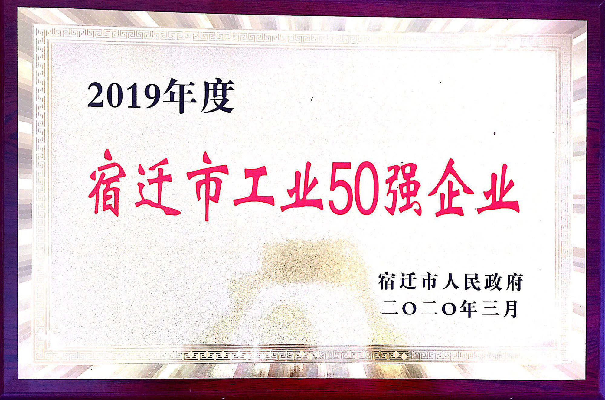 2019年雙星新材堅持以創新深度價值提升戰略布局,貫徹高質量發展,扎實穩打,推進企業持續發展,綜合全市工業企業2019年度開票銷售、入庫稅收、技改投入、發明專利等指標考核,雙星新材被評為2019年度宿遷市工業50強企業第六名。