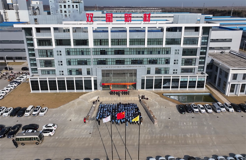 Vice Chairman of Suqian CPPCC and Chairman of Suqian Federation of Industry and Commerce Li Ruihua Chairman of Shuangxing New Materials Mr Wu Peifu Vice Chairman of Guoluo CPPCC and Chairman of Federation of Industry and Commerce Tang Xiangjun Secretary of the Party Committee and Director of the Education Bureau of Maqin County Qi Wannian and Executive Chairman of Maqin County Federation of Industry and Commerce Yan Jinbao along with representatives of Shuangxing New Materials employees collectively witnessed this exhilarating moment