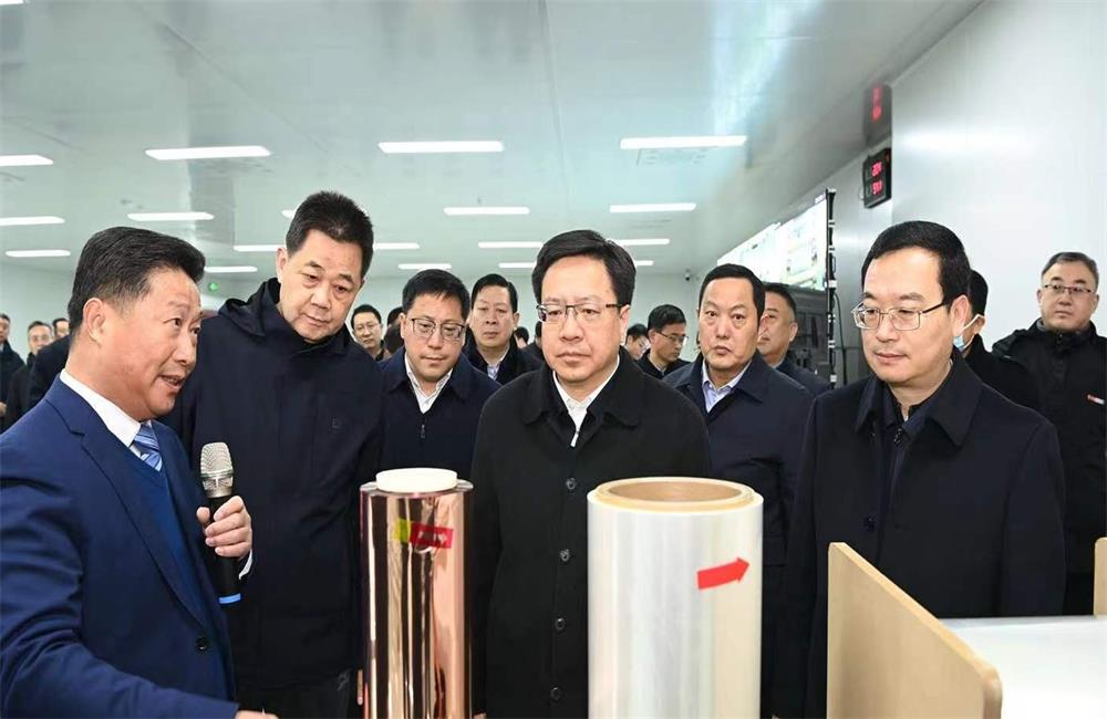 一月四日上午8:50,宿遷市委書記陳忠偉,市委副書記、市長劉浩等一行領導率全市重大項目現場觀摩團走進雙星新材,現場觀摩了精密涂布深加工項目的生產運營情況。