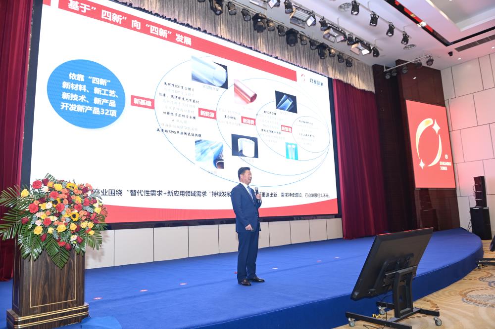 在新產品新技術推介環節,公司副總經理五大板塊總監葛林、總經理助理錢向飛、技術研發中心工程師王琪分別對雙星的復合銅箔、光學離型保護膜、MLCC離型膜等多項新產品新技術的特點、優勢、市場前景進行了詳盡的講解和專業的剖析。